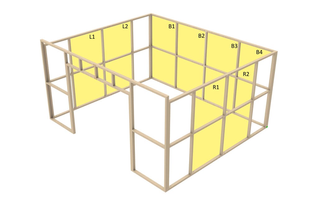 Base Size: Width 4800mm, Depth 4200mm Wall Height: Front 2500mm – Back 2365mm Door Opening: 2400mm or 3000mm Area: 20.2m2