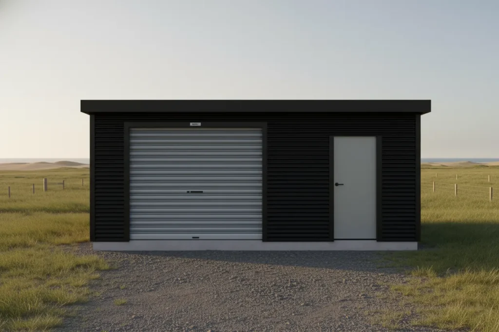 This configuration includes a 2.4m roller door and a PA door on the front wall.