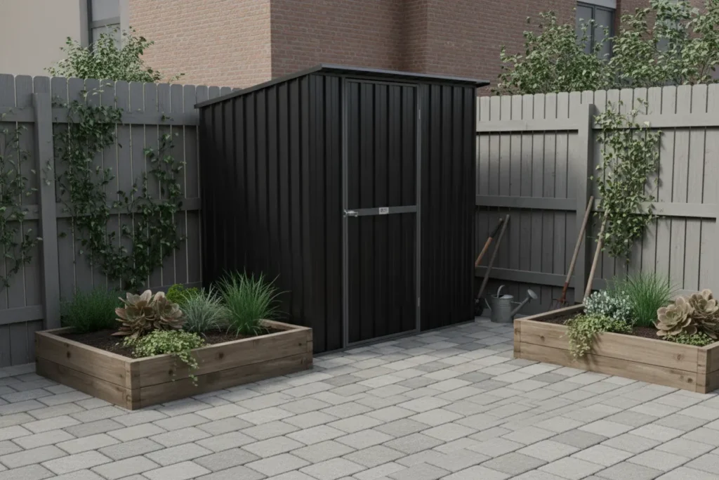 Sloping Roof – Width: 1830mm, Depth: 1530mm Wall Height Front: 1980mm, Back: 1830mm Area: 2.80m2 Door Opening: 750mm