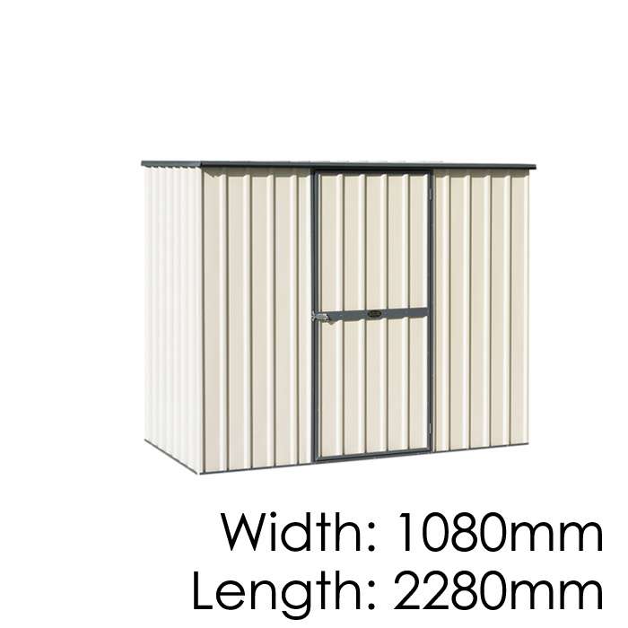 Sloping Roof – Width: 2280mm, Depth: 1080mm Wall Height Front: 1830mm, Back: 1770mm Area: 2.46m2 Door Opening: 750mm