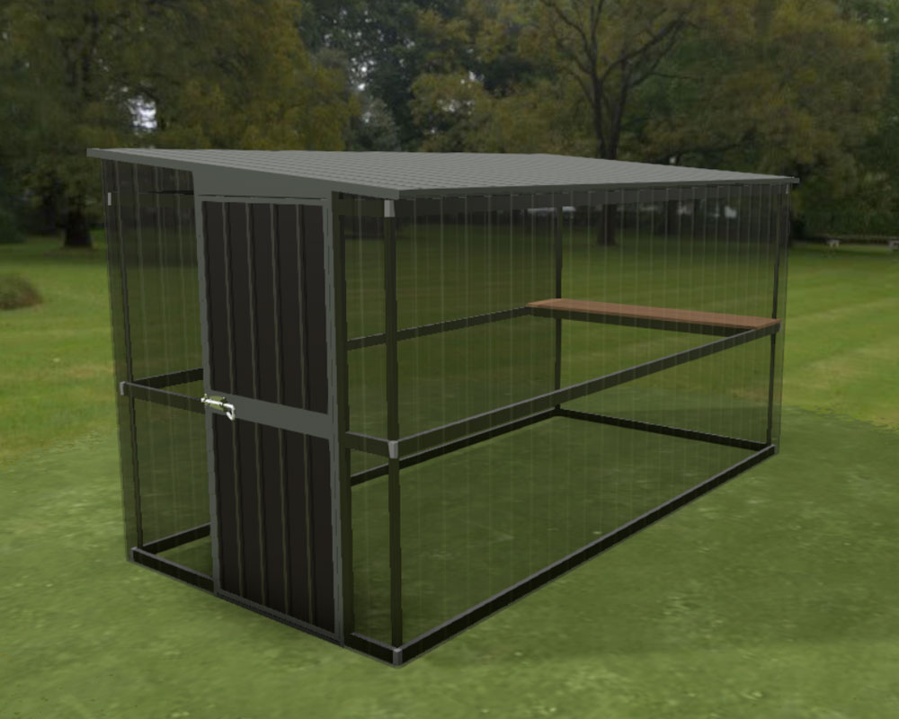 Sloping Roof – Width: 1830mm, Depth: 3770mm Wall Height Front: 1980mm, Back: 1830mm Area: 6.90m2 Door Opening: 750mm