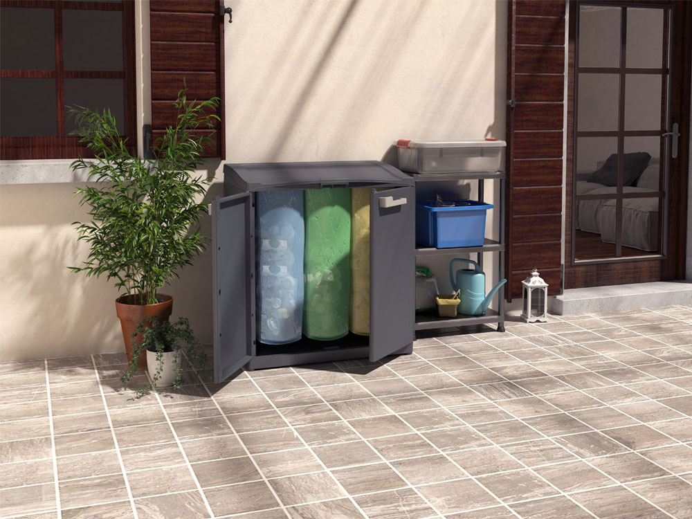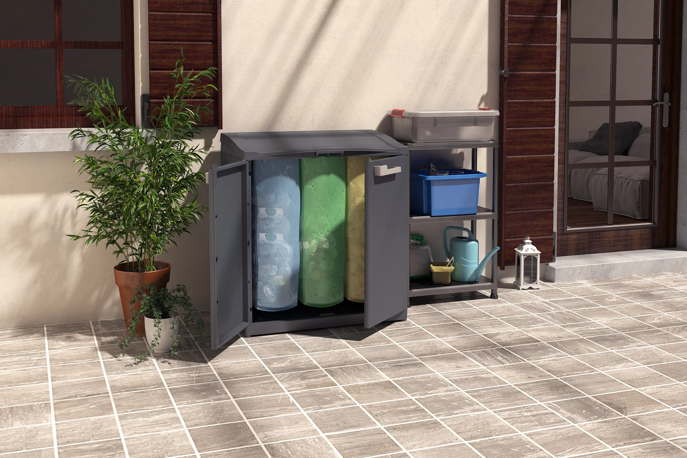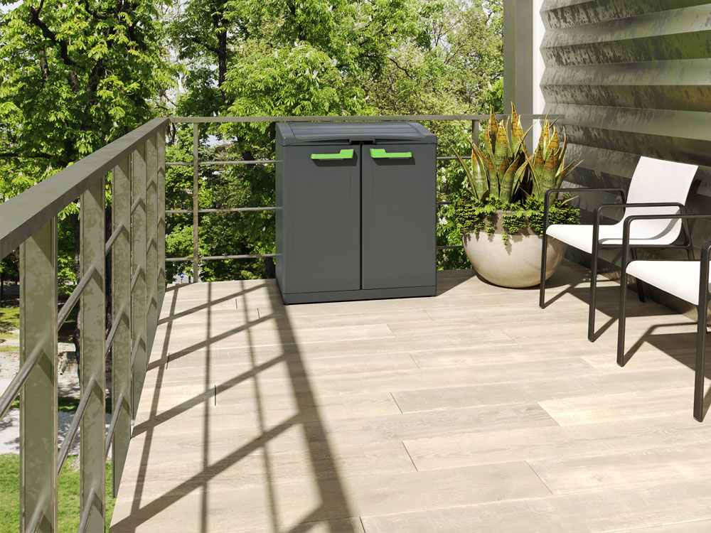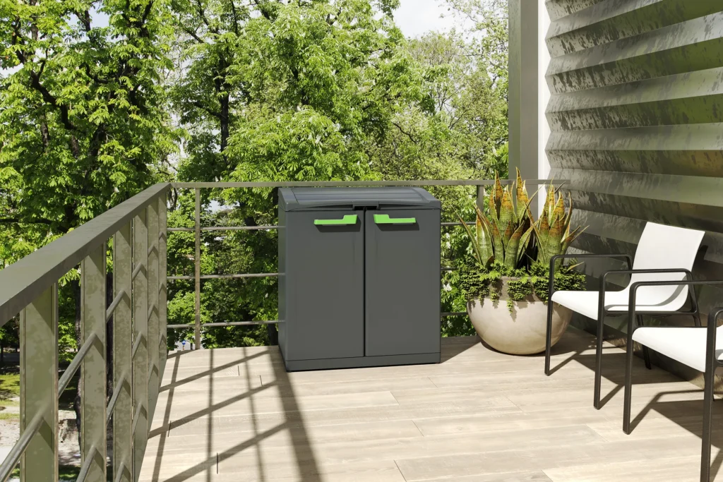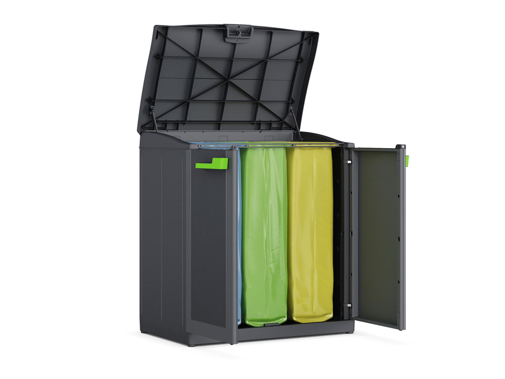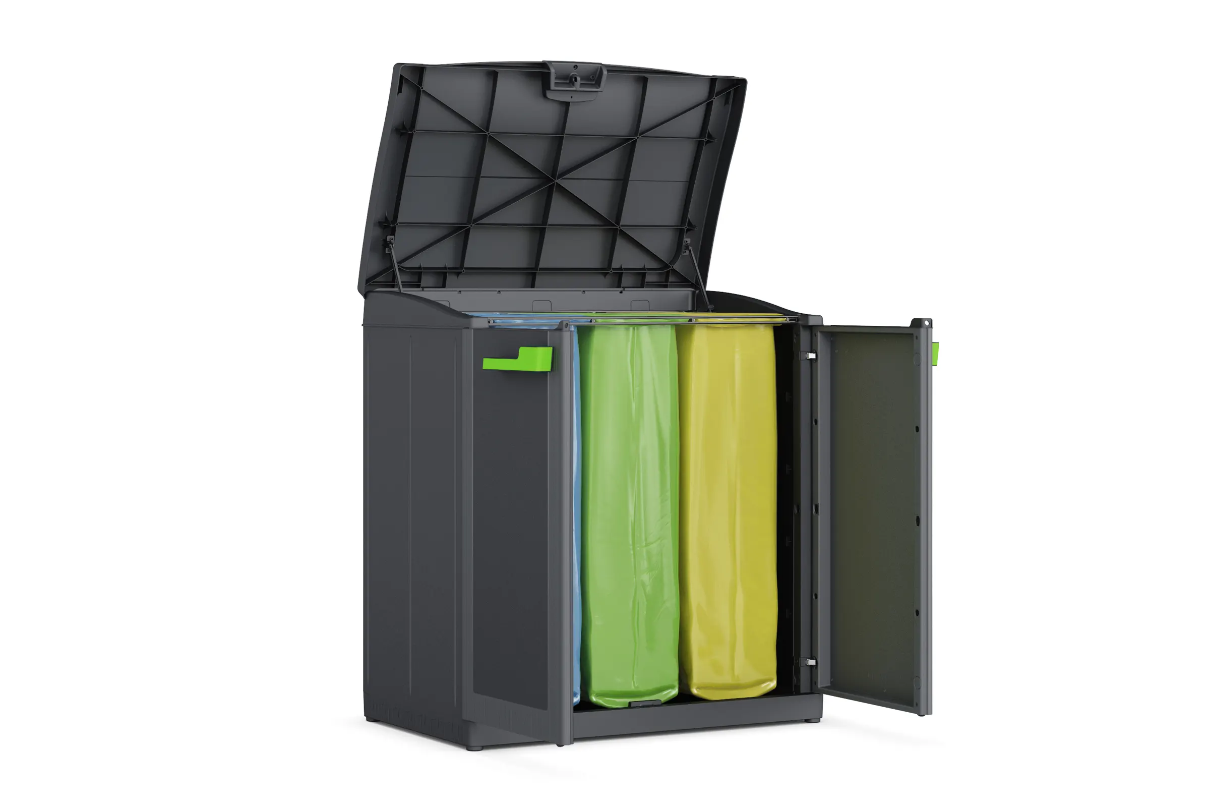 The Moby Recycling Cabinet is designed to make recycling easy and efficient. It features three compartments, each capable of holding a 110L bag, helping you stay organised. Built with metal hinges and lockable doors for added durability, it’s also UV-resistant for long-lasting outdoor use.