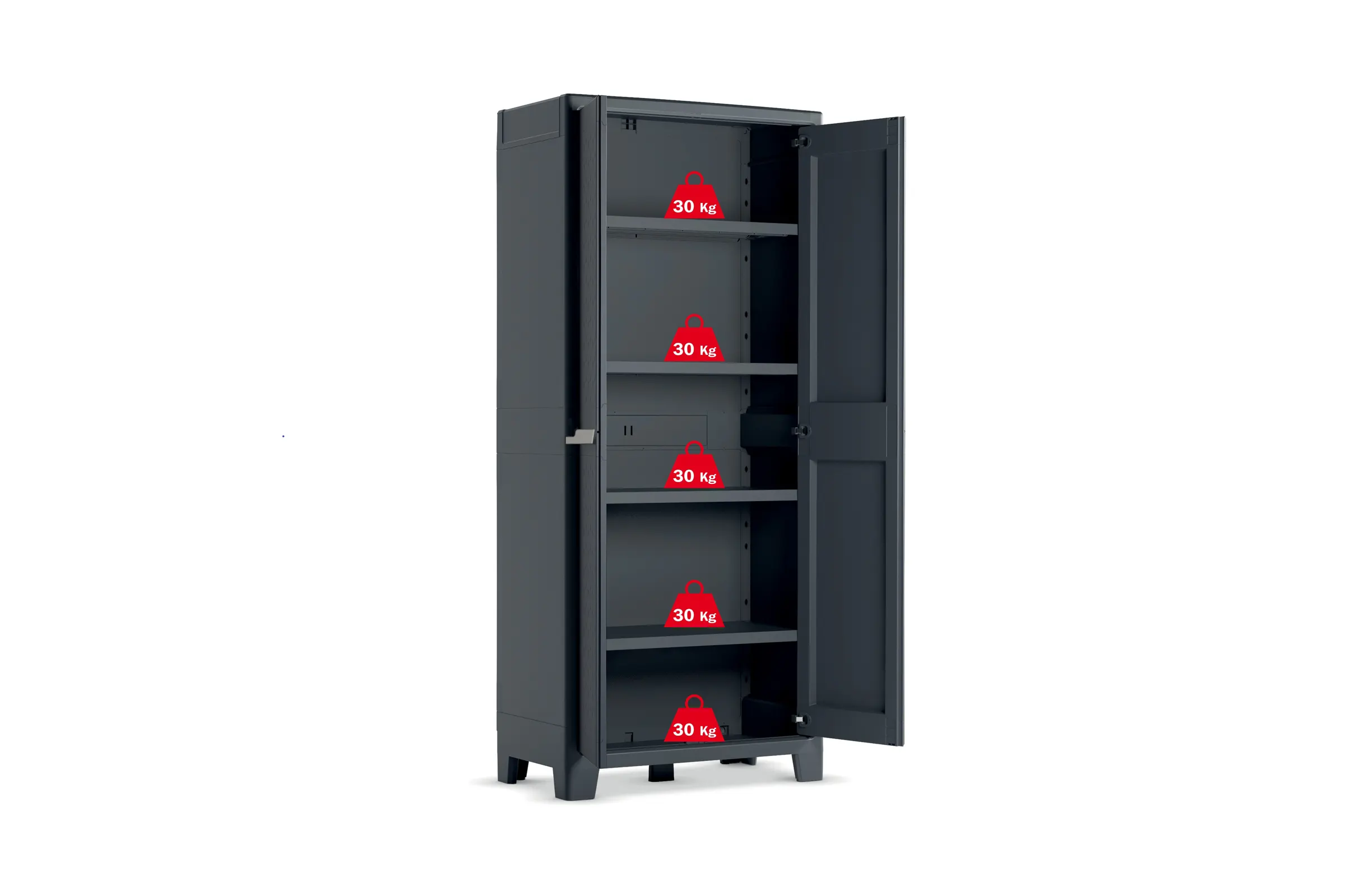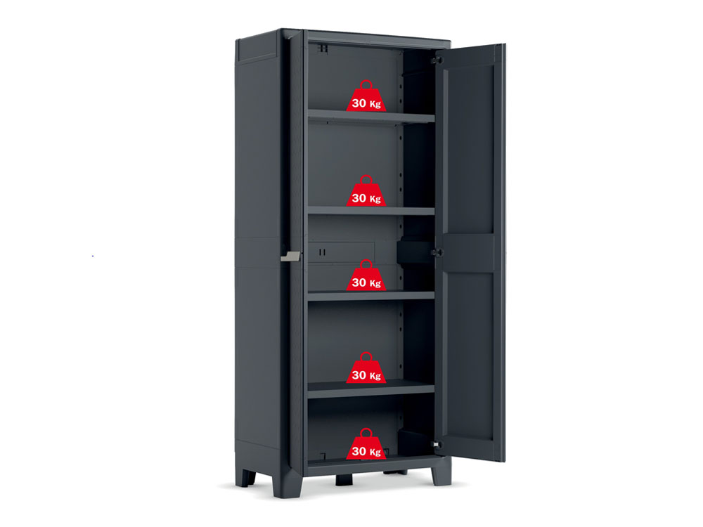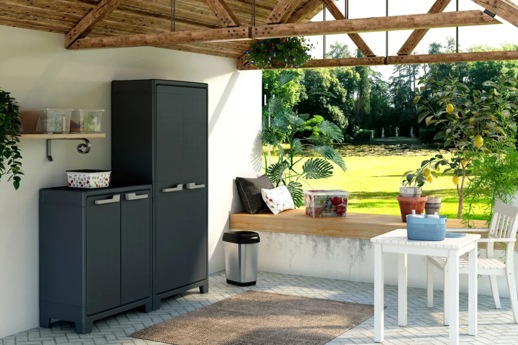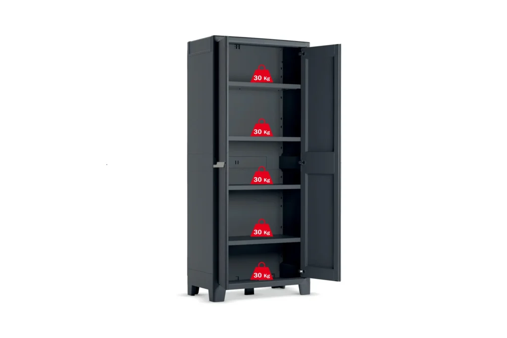 The Moby Tall Cabinet offers reliable outdoor storage with four adjustable shelves and a reinforced base, each holding up to 30kg. UV-resistant and IPX3 water tight, it’s built to handle the weather. Lockable doors and sturdy metal hinges keep your items safe and secure.
