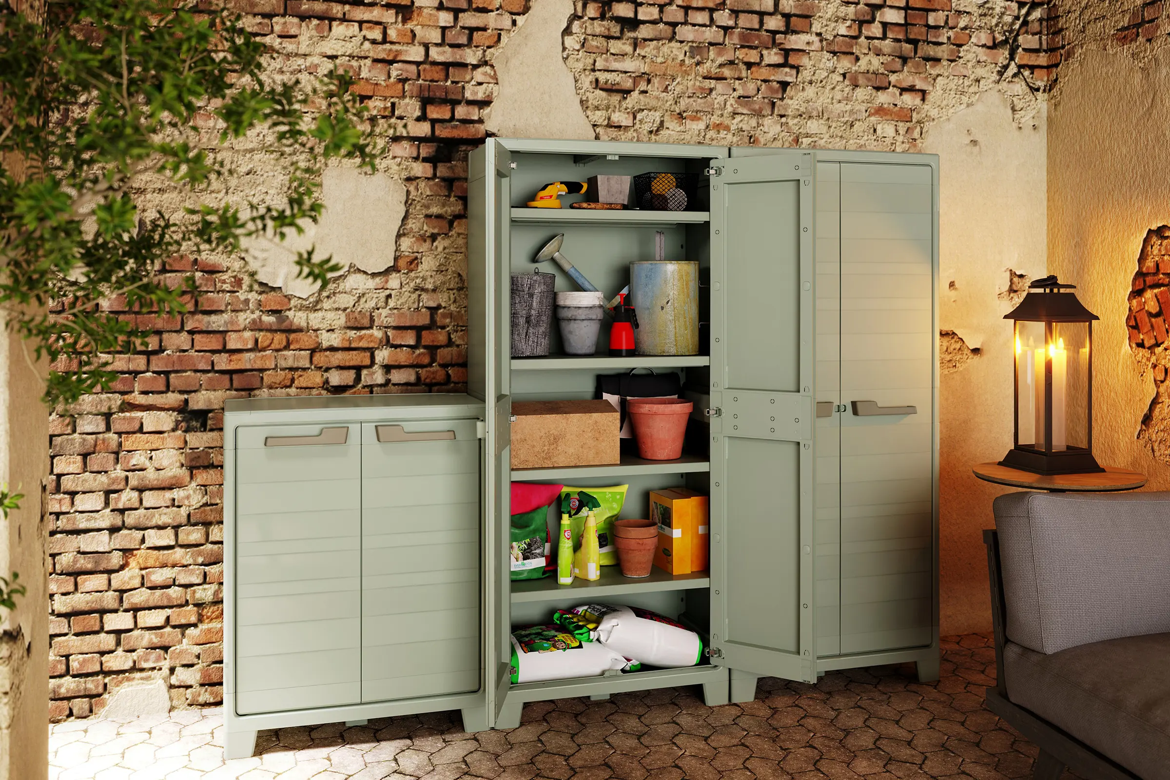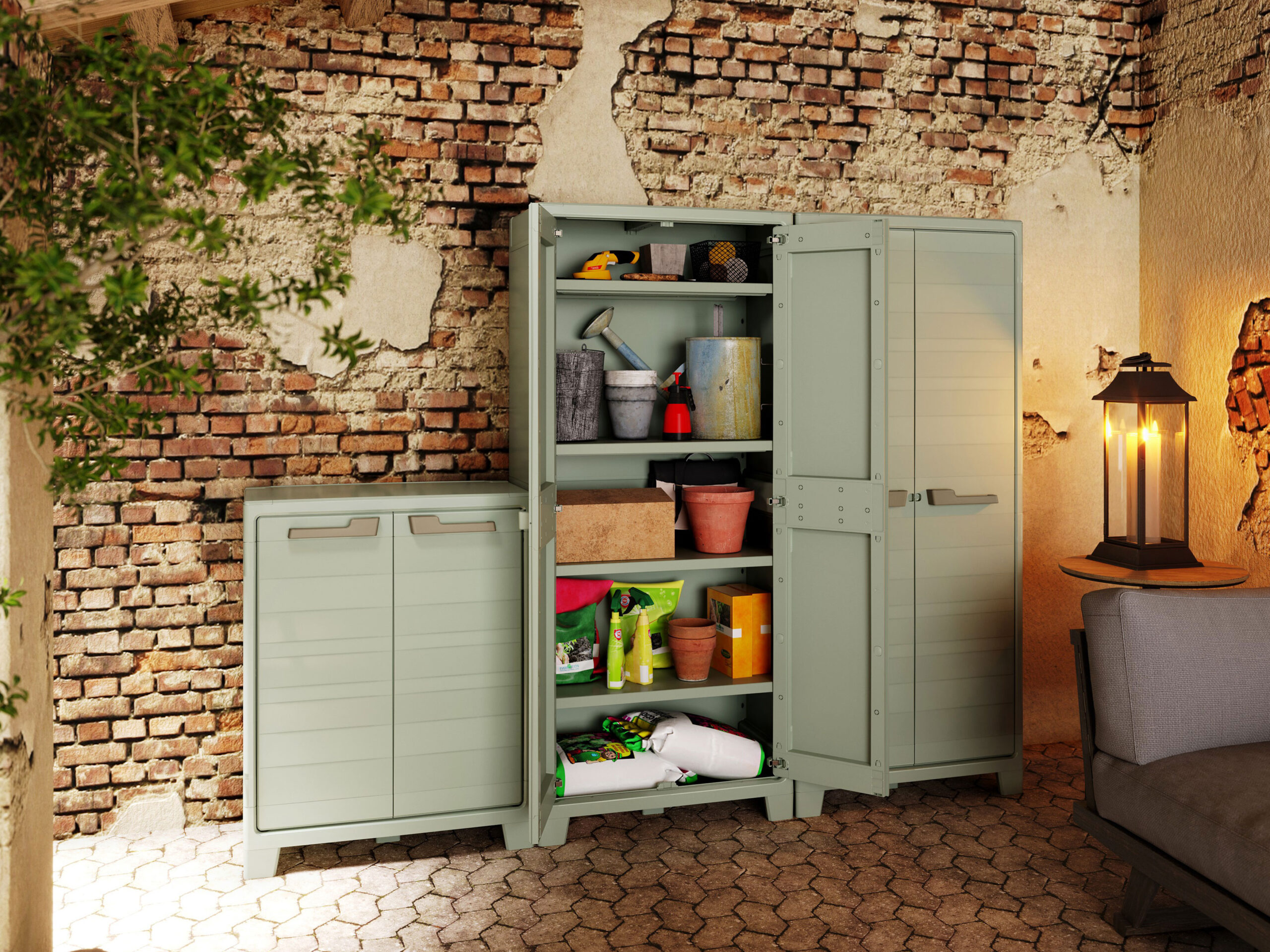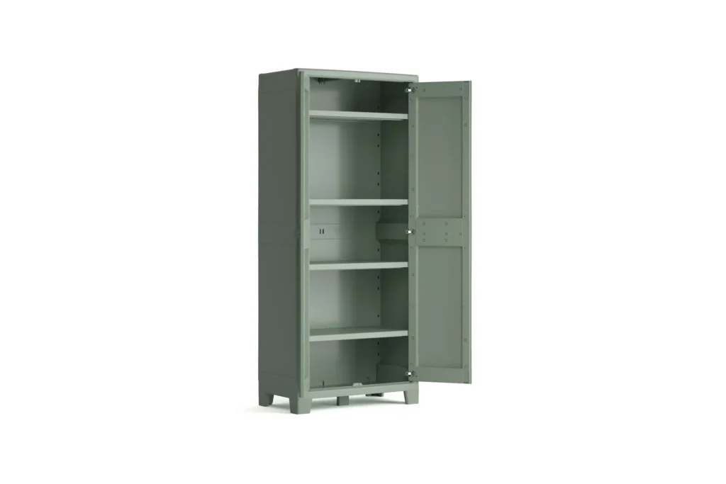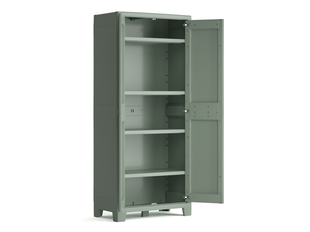 The Planet Outdoor Tall Cabinet combines style and strength with a watertight, UV-resistant design. Made from over 80% recycled plastic, it features four adjustable shelves and a reinforced base, each supporting 30kg. Lockable doors keep your items secure in a sustainable storage solution.