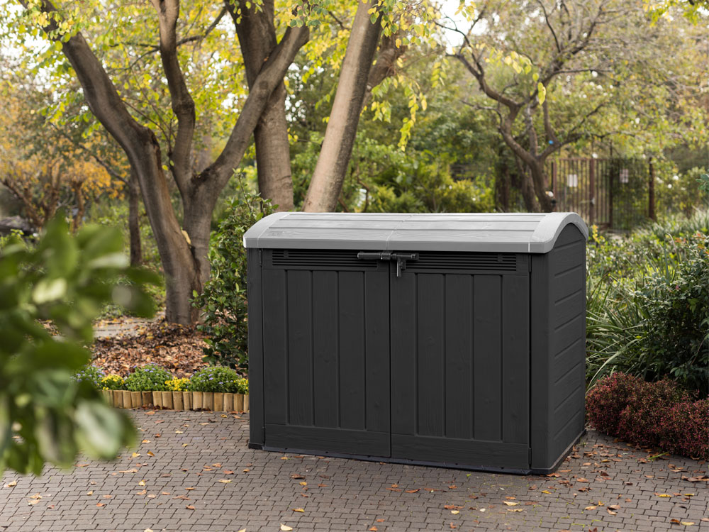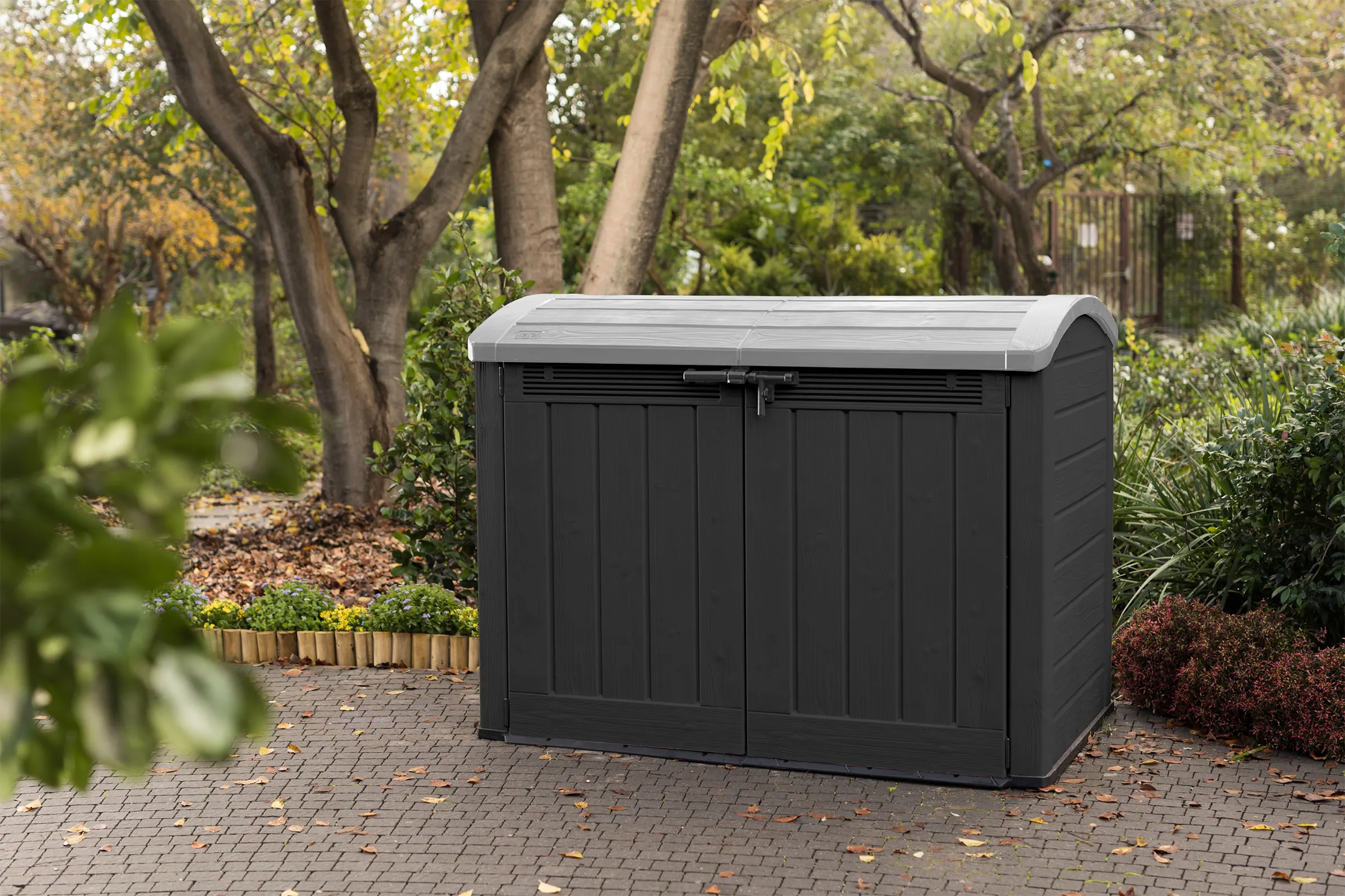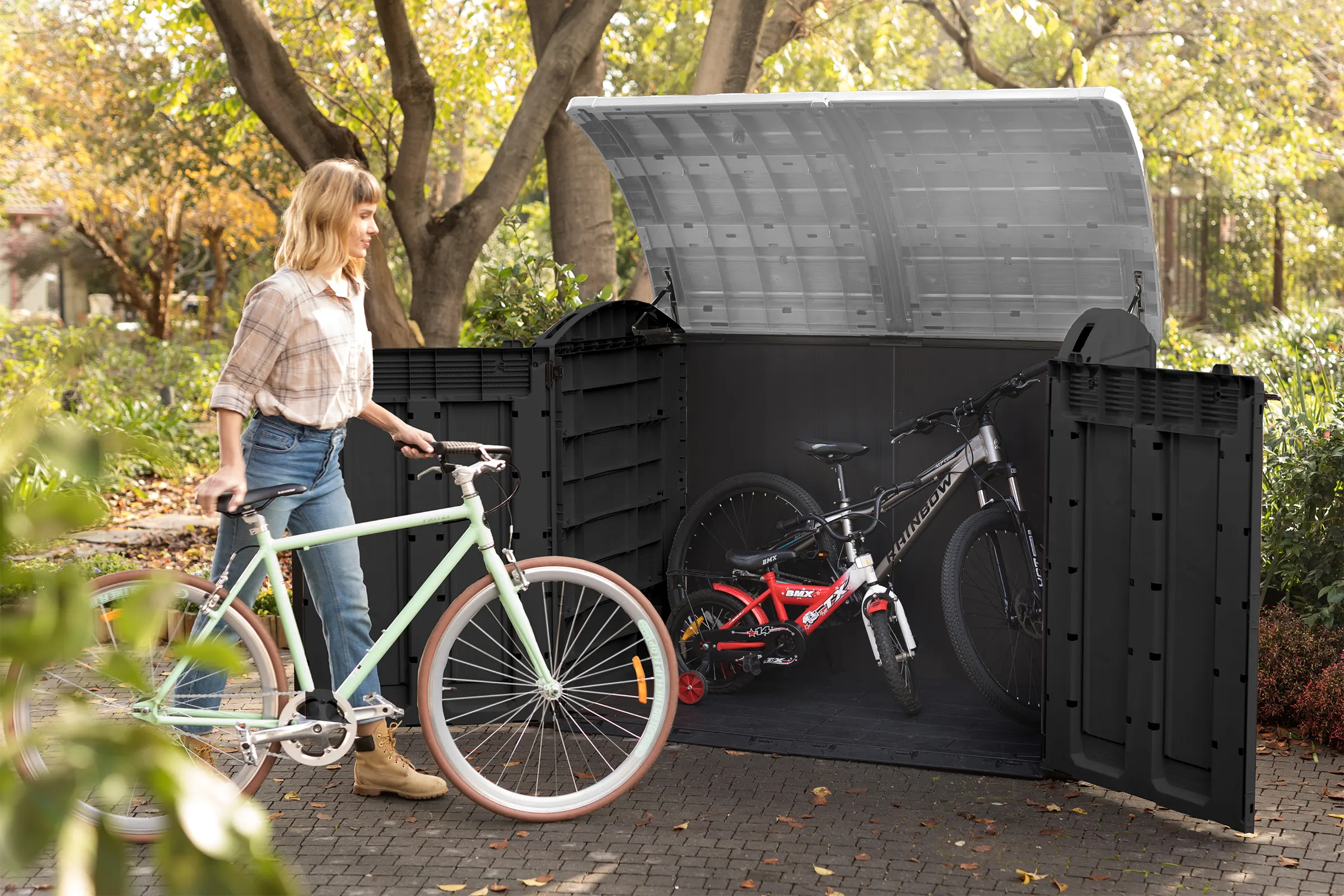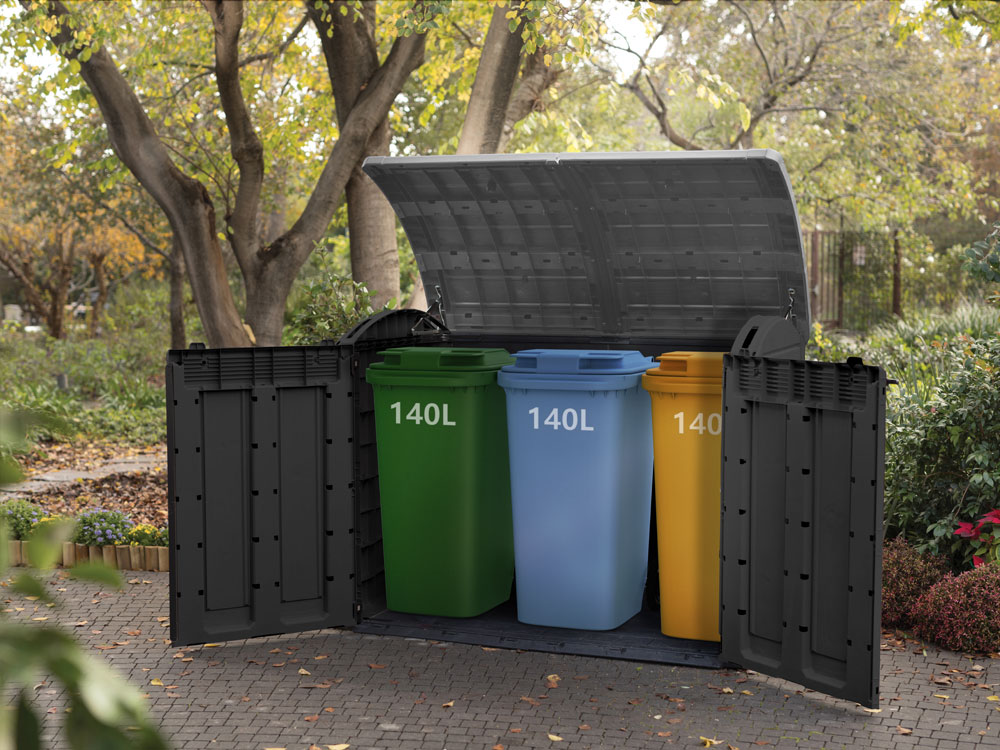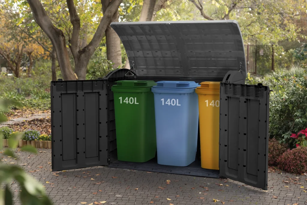 – 2000L capacity fits two 360L or three 120L bins, garden gear, bikes, and more