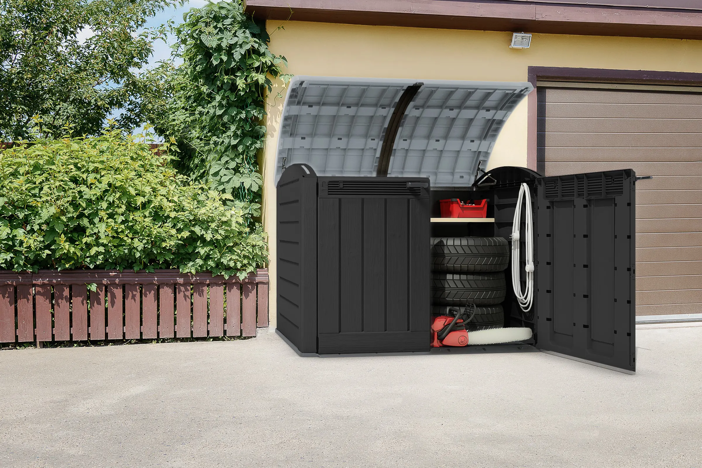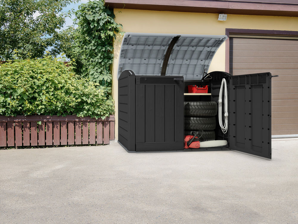 The Store-It-Out Ultra is a top-selling, versatile outdoor storage solution with a roomy 2000L capacity. It fits everything from two 360L bins to BBQs, bikes, or pool pumps. Built to last, it’s weather-resistant, ventilated, and features a sloped threshold for easy access. Lockable, easy to assemble, and includes a free bin-opening kit.