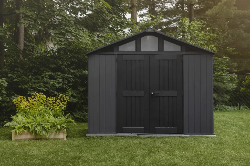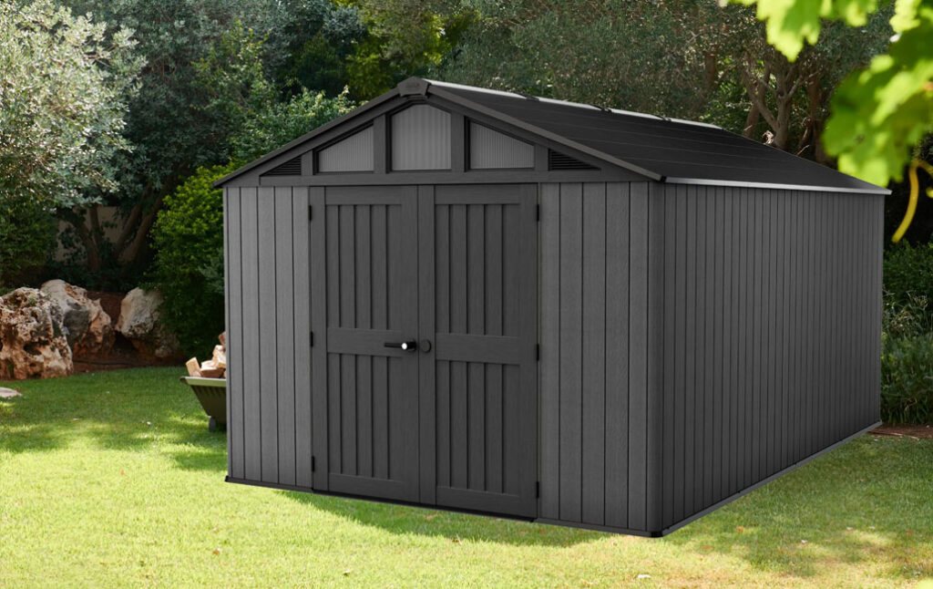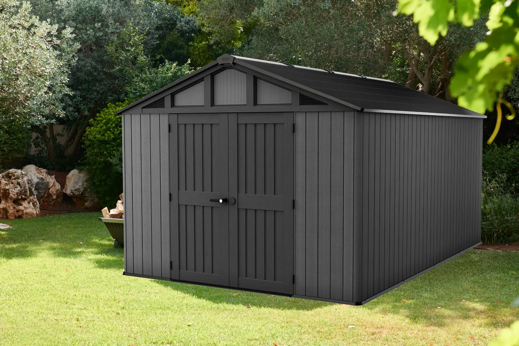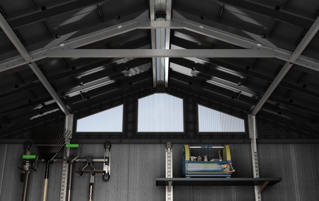 The Stronghold 10×15 Shed offers generous, reliable storage with exceptional value. Its wide double doors and adaptable interior make it easy to keep everything organised. Constructed with robust Evotech™ panels and a steel-reinforced roof featuring 3D tile design, it stands up to harsh weather. Extra-large windows and a skylight bring in natural light, while the 3-point locking system keeps your contents secure.