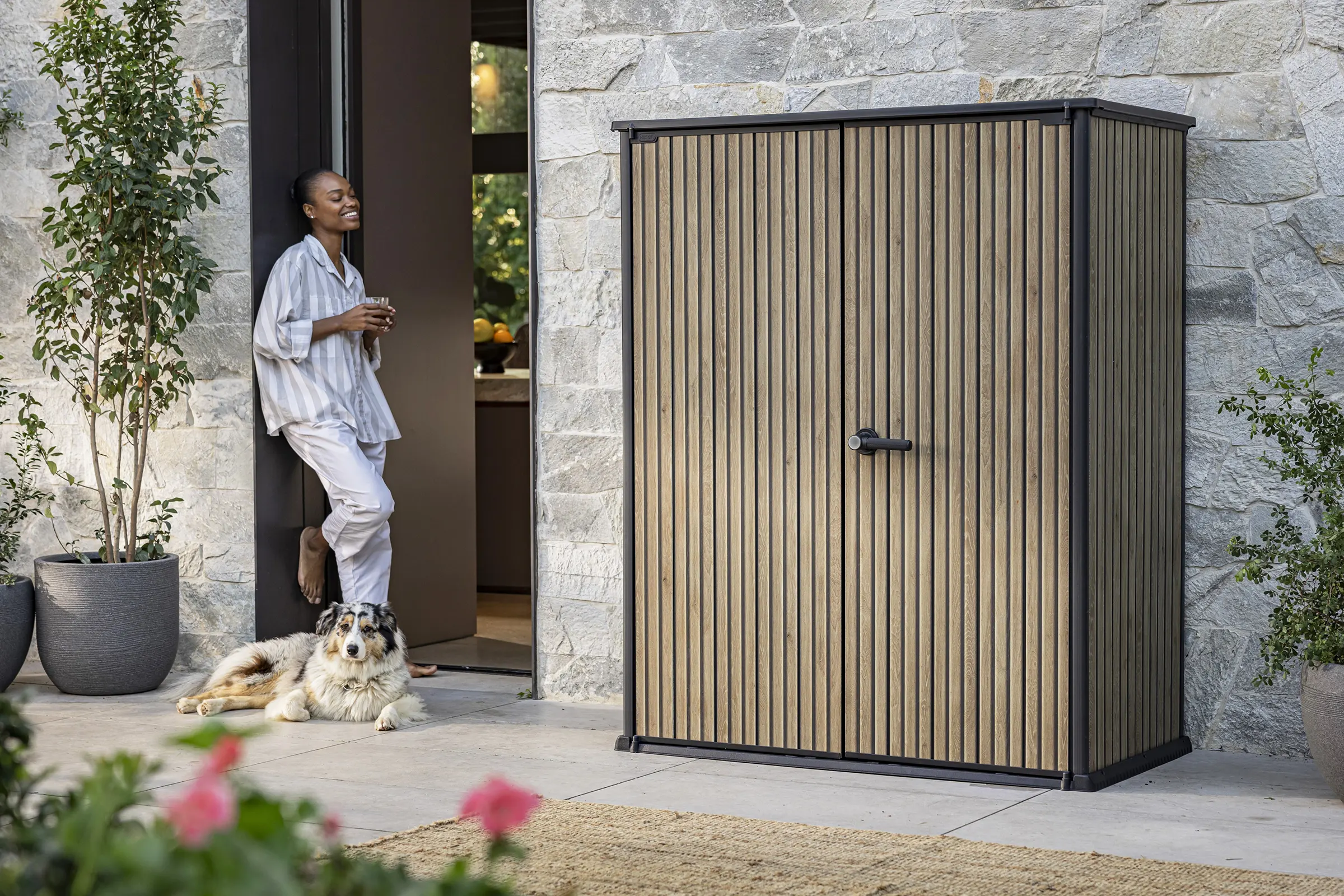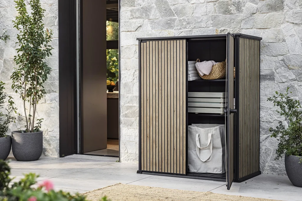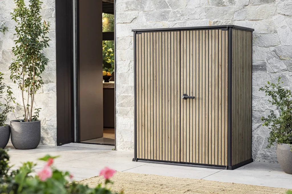 Maximize your storage potential in compact outdoor areas with the Venetian High Store Plus, a premium vertical shed from the Signature Collection that combines a sleek, modern aesthetic with robust engineering. Designed for patios, balconies, and smaller gardens, this 1400L unit offers the warm look of natural timber while providing a weather-resistant solution for organizing long-handled tools and gardening gear.