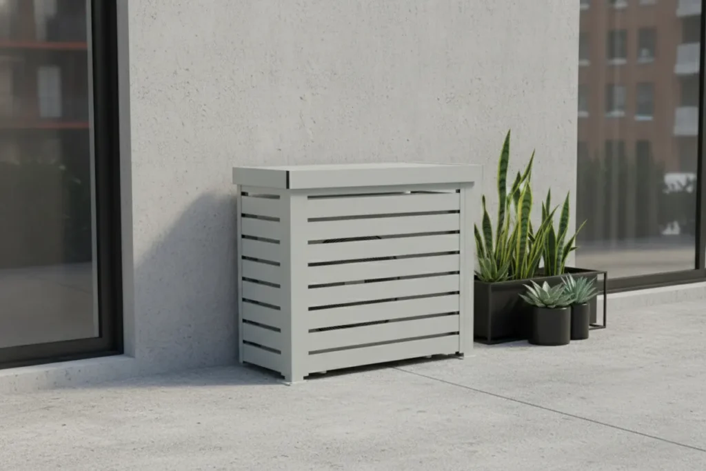 Elevate your outdoor area with our New Zealand-made aluminium air con covers. Available in a range of Dulux powder coat colours, they feature a slat top or open top design to suit your needs. With their sleek and stylish look, the Uglee covers bring both organization and a touch of elegance to your outdoor space.