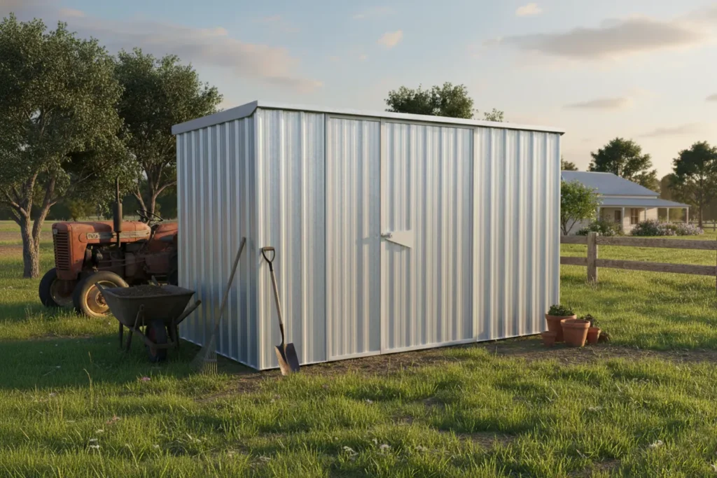 The SmartStore Lean-to SM3015 Zinc is designed as a compact, space-efficient storage shed that fits neatly alongside existing structures such as house walls or fences. Its lean-to roof sends rainwater to the rear, making it particularly suitable for narrow side yards and boundary lines where keeping the front area clear and accessible is important.