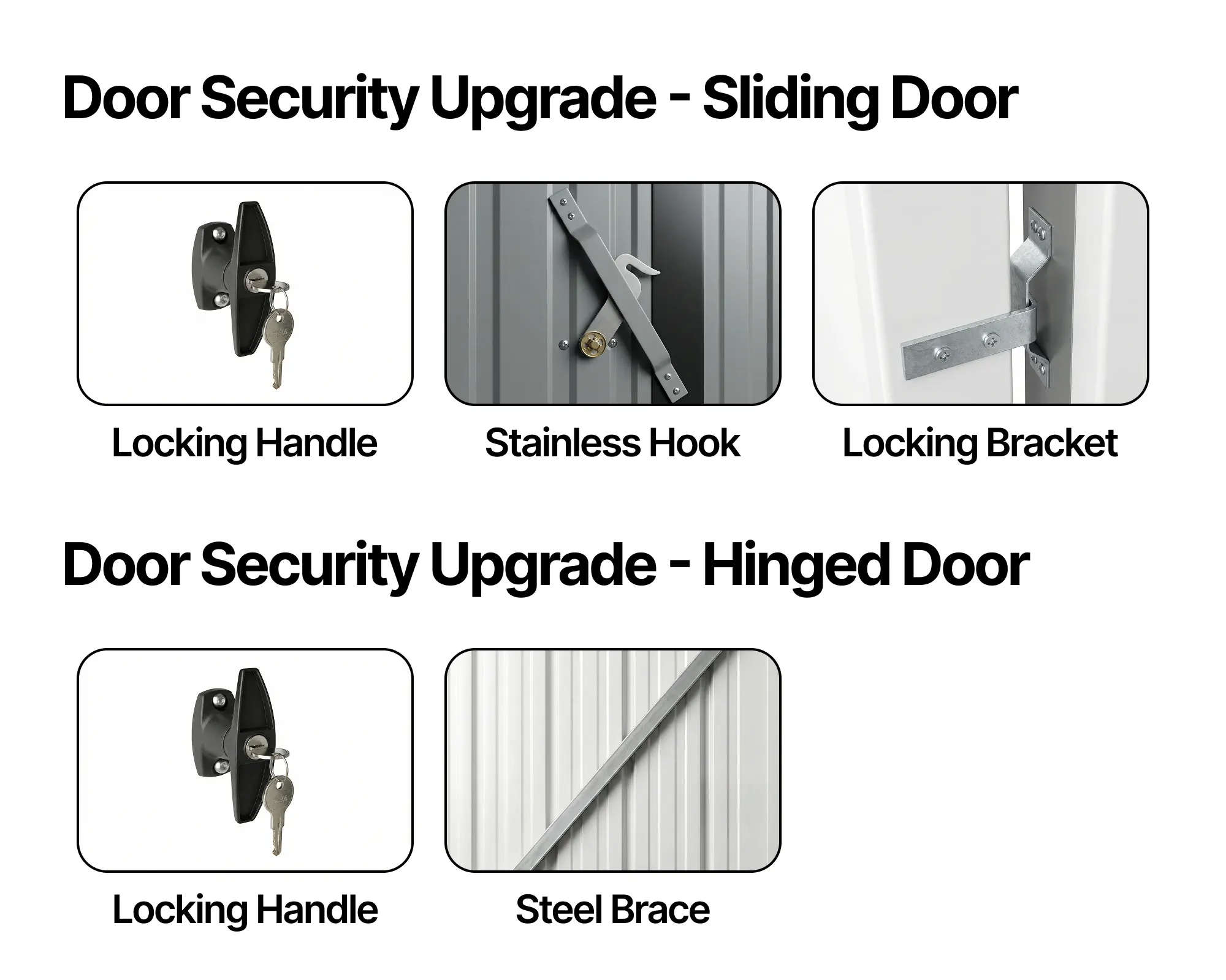 • Door security upgrades: Security upgrade options for single or double doors to help protect valuable tools, machinery, and equipment.