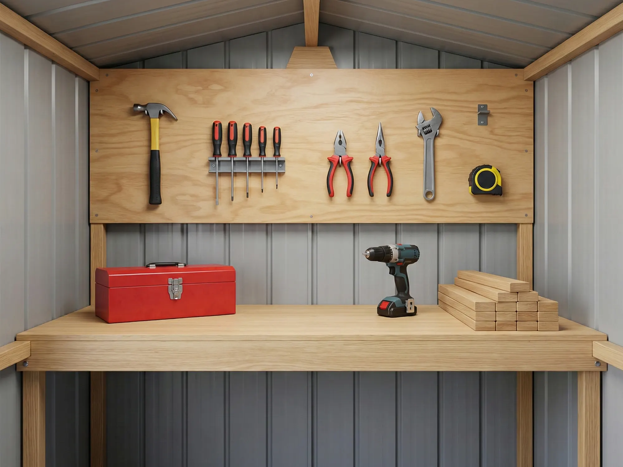 • Built‑in work bench: Creates a dedicated workspace for DIY, maintenance, and projects.